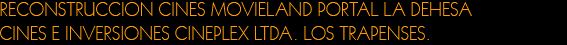 Obra: Reconstrucción Cines Movieland Portal La Dehesa. Cines e Inversiones Cineplex Ltda. Monto: 54.000 UF Superficie: 1.800 m2